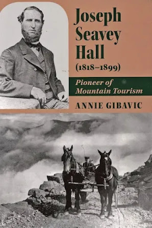 Also on my reading table for the past few weeks has been JOSEPH SEAVEY HALL (1818-1899), Pioneer of Mountain Tourism, by Annie Gibavic. This 227-page New Hampshire mountains history (Bondcliff Books) is authentic in ways that Mina's Chandler novel can't match—Gibavic is both a regional historian and a descendant of Hall, and worked from a trove of correspondence and background material to write the life of this mountain guide, including his adventures during the Civil War, silver mining in Nevada, assisting family in rough-country Michigan, and settling for his final years in Vermont.