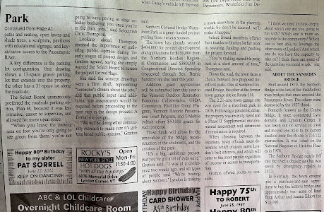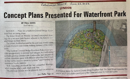 So it's a pleasure to see this article in the Caledonian-Record this week describing the planned Sanborn Covered Bridge Riverfront Park (tap images to see larger versions):