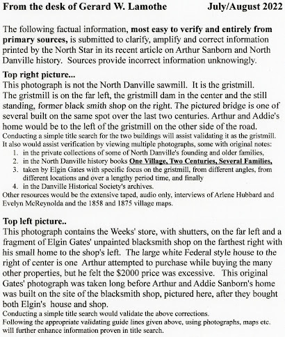 This page of Gerry's corrections should be considered in future historical writing about North Danville village.