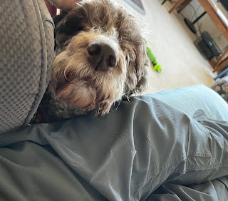 For me, that's how it goes. One morning the last straw lands on the camel's back, or a spark catches on a shred of paper under a heap of sticks, and it's time to shut the visiting dog into her crate for a bit, so I can focus on the keyboard instead of delivering scratches, pats, and "good girl" crooning.