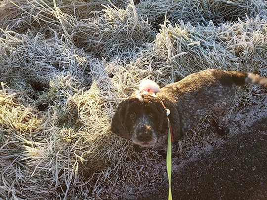 Picture 1: This weekend we're forecast unseasonably warm weather but, for now, the icy mornings go on... Here is Clem clearing the windscreen.