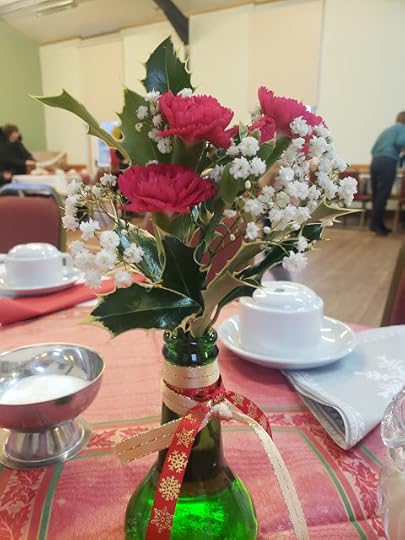 We reminisced about the Christmas Hall Parties of our childhoods in Stenness and Deerness, too, although as adults we took time to appreciate the care taken to the finer aspects of the party, like the small vases on each table.