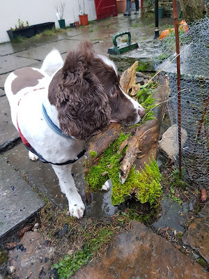 Picture 2: The dogs were walked separately today because Orlando had (and passed!) his MOT. Jess isn't convinced about her aloneness, but she has now accepted her scarf at least!