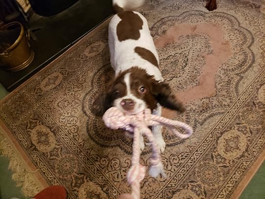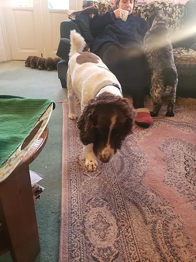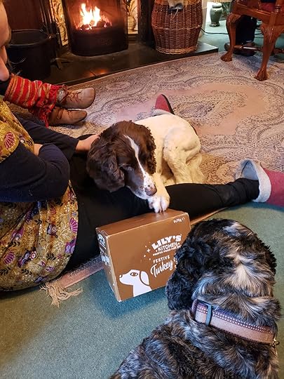 The dogs' Christmas present arrived. Unfortunately, it said what it was on the package so the dogs knew instantly what it was, and they were very interested! Orlando started unwrapping it until Jess began growling at him. She says she saw it first.