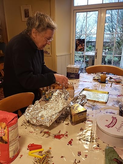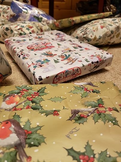 Picture 5: Home from work and making a start on more Christmas wrapping!