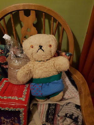 Picture 4: Poor Teddy is sitting downstairs at the moment, after being rudely grabbed from his perch in the bedroom by Orlando. He looks pretty traumatised, don't you think?