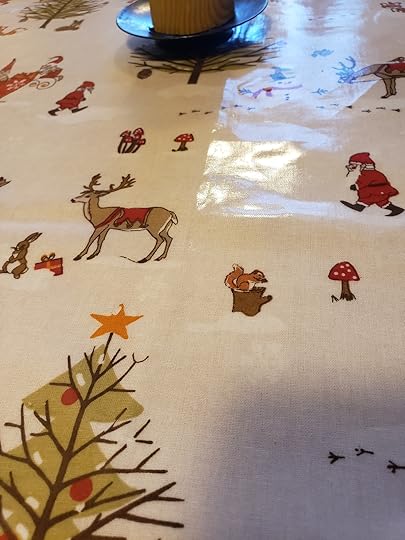 Picture 2: But look at our lovely Christmas tablecloth! This was bought for our Big Family Christmas last year and it's just so jolly and festive!