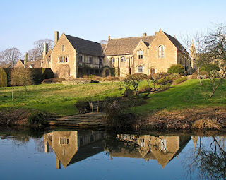 Great Chalfield, looking over the moat and gardens.In the summer, when it was open to the public (it’s owned by the National Trust), I went back, and wandered round the house and gardens, entranced by the terraces, the moat, the splendid Great Hall, and the listening masks in the walls high above, so that the lord, or the lady, could keep an eye and an ear on what was happening down below. It was the inspiration I had been looking for. Back at home, I read up on the history of the house, and found that it had hosted a garrison during the English Civil War – my favourite historical period, ever since I’d fallen in love with Prince Rupert at an impressionable age. Better and better – except that the owner of the house at the time had been an elderly widow. I wanted to write about a young woman with a family, so I used a novelist’s licence and picked up Great Chalfield and put it down in one of my favourite villages, Norton St. Philip in Somerset. I’d first visited it when I was a member of the King’s Army, doing a weekend re-enactment with my regiment in Wiltshire a few years before. On the Saturday, we’d all gone, in costume, to the George, and spent the evening singing Cavalier drinking songs in the main bar. There was a group of American tourists sitting in the corner, and I suspect they thought we put on the same show every night!