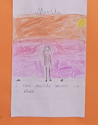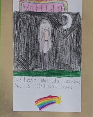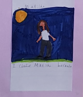 Her first surprise was that it was a boy. The voice had been so hushed and gentle, Matilda had expected a young woman. Next, she was surprised to find that his eyes studied her as thoughtfully as she was studying them. And they were frightening eyes. They were wild and blue, even in the night light of the moon. She was about to step away from them, but he caught her wrist and laughed again.And, of course, the main character Matilda was the chosen character of quite a few!