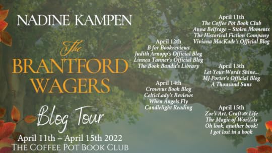 This week, I'm super-excited to be teaming up with The Coffee Pot Book Club to share an excerpt from Nadine Kampen's new book, The Brantford Wagers! This is the first outing for her series, The Brantford Series.