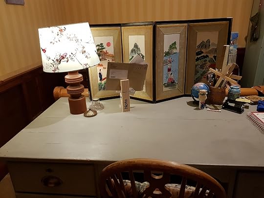 Picture Two:The house is beginning to take shape.But, with Christmas on the horizon, how long can this desk stay clear?