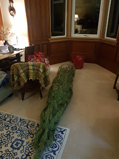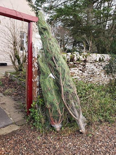 2 - Our tree has made it inside, but is still horizontal! It will go up tomorrow, in the beautiful new flexitub that Judith got in Thurso today! This time tomorrow, the drawing room will look very different!