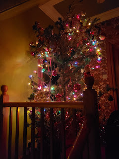 4: Mum's tree lighting up the living room with its traditional beauty.