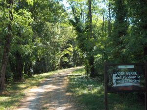 On our last day of the holiday, intrigued by the signs, we decided to follow them. I blogged about this camping trip as a part of the series ‘Abandoned Parent Training’. Below, you’ll find an extract of my blog post ‘Teas and Trees’, in which I mention the ‘breakaway’ trip from the Flow Vélo to visit the touristy town of Brantôme, and also the section from St.Pardoux to Thiviers, the eastern end-point of La Flow Vélo.