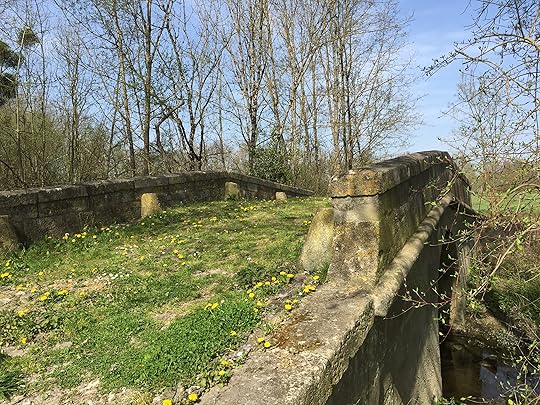 When I stopped at the end of the viaduct to read the inscription on the stone, a dog-walker informed us that the viaduct was actually an old Roman road. It’s used by the locals when the normal road floods. But as it’s only wide enough for one car – and there’s a drop on each side – this must lead to conflictual situations and lots of reversing.