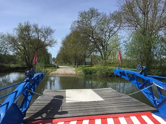 Having been disappointed by the lack of ferry at Rouffiac, we were delighted to find another chain-ferry crossing – in service. We wheeled our bikes on board and chugged across from the Concoury side to discover the village of Chaniers.
