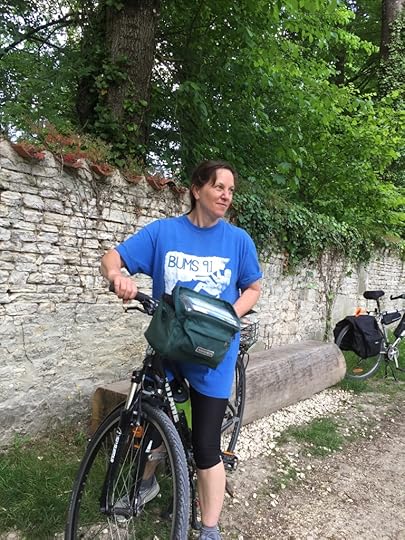I know how to deal with hills these days. When I first started cycling, I hated them. Now, I put my bike into first gear and think about something completely different as I pedal. Can you guess what motivated me up this hill into Saintes?