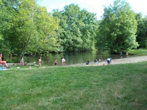 We chose the River Dronne because it was on the page of the map book when we opened it. Also, it seemed to be rural and without particular interest: perfect for peaceful cycling without tourists. We chose our campsite in the same way. The village of Lisle appeared to be large enough to have a bakery and charcuterie for picnic supplies, and the campsite was small.