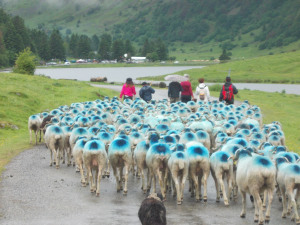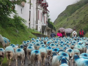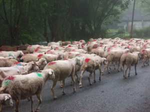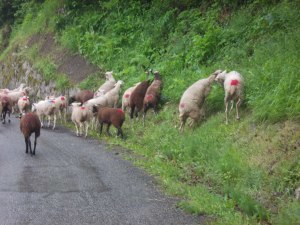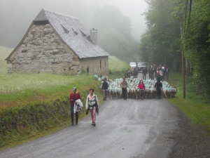 [image error]As predicted, today was very sheepy and very wet. I’m proud to announce that I did the transhumance (accompanying the sheep from the valley to the mountain pastures), and I did it no less than twice in one day.