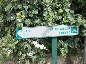 We start to notice green signs for cyclists. Each one is on a pretty stretch of road, and we suspect they follow a scenic route, though we’ve no idea of the destination. All we want, by now, is to arrive at Montignac.