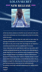When I began to write Lola’s Secret, I stole the boy she had loved for her entire life from her. I stole her parents from her. I stole her life from her; her perfect little world was shattered. I hurt her tremendously by placing her in an awful family, with dreadful parents and horrible siblings. I made her live out her entire childhood under horrid circumstances. I wanted her to feel what I had lived; I felt her pain and I lived her losses with her. But Lola seemed so much stronger than I was, and I admired her courage. I was resentful of her surviving the events that I had imposed upon her that should have traumatized her forever. I hated her for that! I envied her, her strength! She just refused to stay down! What I would not to take from her, was her beloved sister. The sister she adored and would lay down her life for. The only family she had left. That would be too unbearable and perhaps, that would be the final nail in her coffin. I know. I lost mine and I would not want for any other person in the world to experience such a tremendous loss. So, I saved her sister for her. Perhaps, that was what had kept her going?