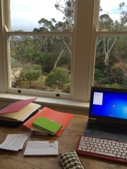 Once upon a time on a blog far far away I wrote this little piece about going to Varuna House—that was 3 years ago and it’s interesting to now compare that visit with the visit this year.2013:When I first read the email informing me I'd won a 2 week residential fellowship at Varuna House - the National Writer's House, the icon of writer peace and tranquility, I simply sat there shaking. Oh, and there was a humungous grin on my face.According to their website, Varuna, the National Writers House is a creative retreat and writers’ network for Australian stories and ideas. Eleanor Dark married DrEric Payten Dark in 1922, and soon after that the couple moved to Katoomba, to this amazing house, where Eleanor wrote eight of her 10 novels. Her best known novel was the best-selling The Timeless Land (1941), the first part of a trilogy, with Storm of Time (1948) and No Barrier (1953).I could tell Varuna House and their wonderful staff and volunteers knew exactly what they were doing. I was perfectly set up in the Ladder Room (there are 5 rooms named Main, Green, Bear and Maid) which was my bedroom and it had an adjoining writing room. The desk was set up in a bay of windows and overlooked the scenery of the Blue Mountains. I didn't look up much - I simply wrote and wrote, some days for fourteen hours - sometimes at three in the morning, or five in the morning - there was nothing and no one to stop me.The house is equipped with everything you could hope for - a selection of tea bulged across a shelf in the kitchen, the fridge was fully stocked, the biscuit tins beckoned, dinner was cooked and delivered to the table - and we're talking five star. All I had to remember to do each day was to shower and brush my teeth.