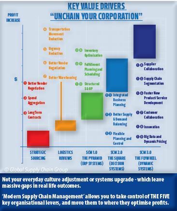 Operational efficiency (profit margins) and asset effectiveness (asset availability and utilisation) have become far more important for CFOs than they were ever in the past. Supply Chains are becoming increasing popular with CFOs as a result – although there is still a lot of confusion about the meaning and use of this discipline.
