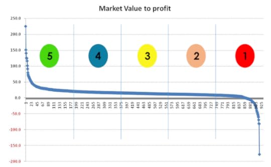 Figure 5 – Ratio of Market Value to Profit in 2012 for 932 companies