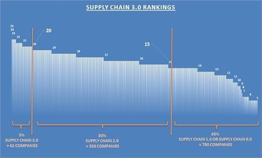 The full research methodology and the resulting ranking of the companies is also given in the book, but for our purpose here it is interesting to note that 62 companies out of the entire starting sample of the top 1200 companies in the world scored 20 points out of 25, which is our cut-off for the Supply Chain 3.0.