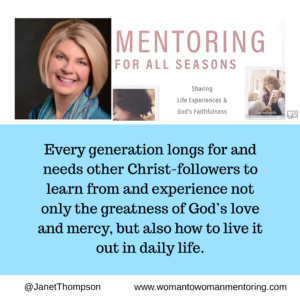 Mentoring for All Seasons: Sharing Life Experiences and God’s Faithfulness, available at all Christian bookstores, online book stores, Amazon, and signed by Janet at our website store.