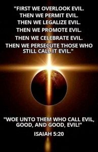 Think about that for a minute. There are only two forces working in our world today, spiritual and satanic. Read the Bible for yourself. There’s either good or evil. Today’s culture and the liberal progressive Democrats have created a social and political agenda that discards and devalues God’s good and invites Satan’s evil to overtake America!