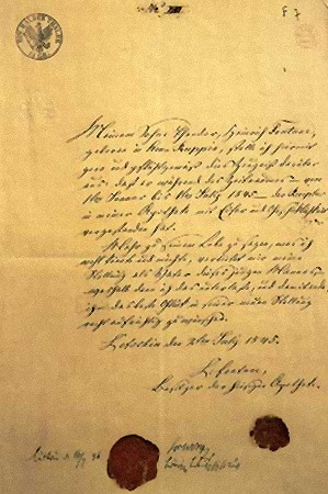 Meinem Sohne Theodor, Heinrich Fontane, geboren in Neu-Ruppin, stelle ich hiermit gern und pflichtgemäß dies Zeugnis darüber aus: daß er während des Zeitraums vom 1ten Januar bis 1ten July 1845 – der Receptur in meiner Apotheke mit Eifer und Geschicklichkeit vorgestanden hat.