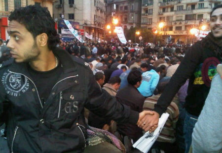 A human shield of Christians holding hands to protect Muslim protesters praying. Okay folks, this hit the tear-o-metre.