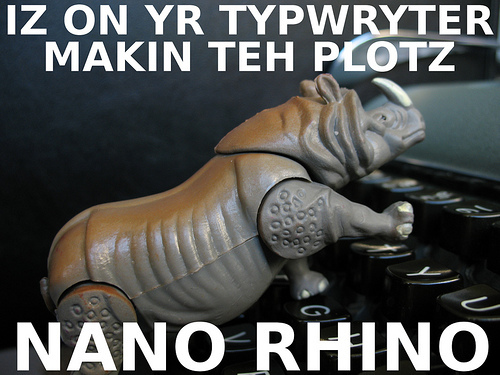 Okay. How cute is that? Seriously. A nano rhino. I can't! ;)Alright. Back to it. This week has been...interesting. It's post-election week, and my writing took a bit of a hit. My focus did, which is why my writing did. But I'm here to put that behind me! Time to move on. I need 7873 more words to win NaNo, and I can totally smash that out. I'm even officially starting my actual NaNo project! Which I hope to hit 50K in (I have 11K from when I started before) by the end of November. As long as I focus and work, I can do it! Yeah!This project is going to be so fun. So, tomorrow, I'm going to read through what I have and take lots of notes so I can move forward with it. I have a lot of started manuscripts I'll be finishing before starting too many of the new ideas I have. And I also want to write another one of my super-sexy 4K shorts this week too. Wish me luck! How are YOU doing? Is it going well for you? I hope so. :)