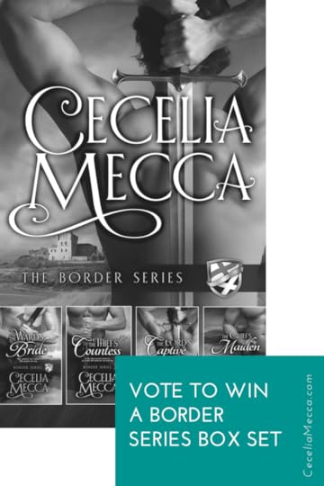 Coming from Facebook? If you’ve not yet had a chance to read the Border Series–a historical romance set along the 13th century Anglo-Scottish border– check out the covers below and head back to the post to vote for your chance to win a Border Series box.