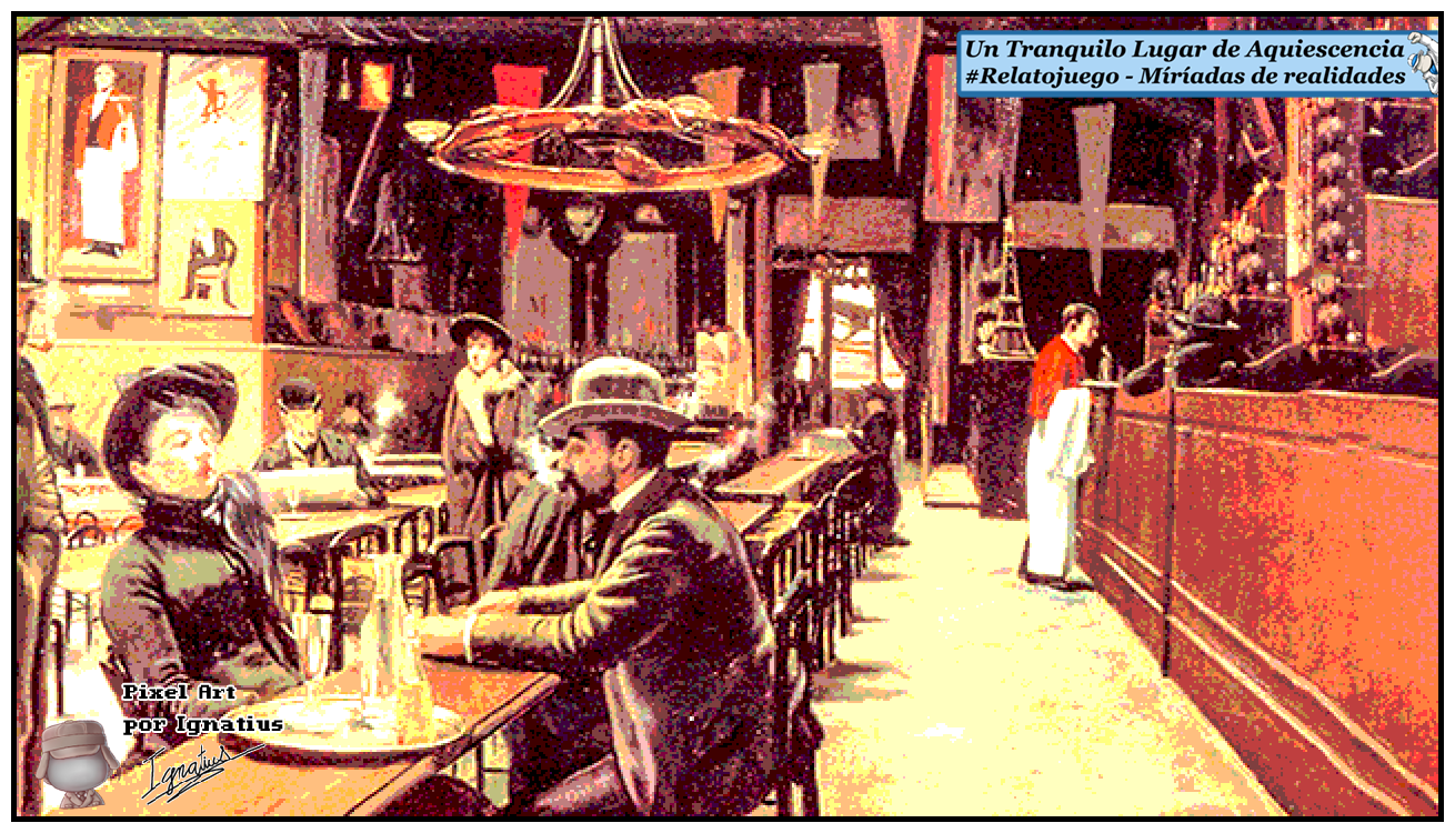 La mujer asiente e inspira con profusión. Retira la pierna con lentitud, y, debajo de su falda, aparece un maletín. Él la mira con tristeza... —Querida, querida... ¿Me esperas en la calle mientras me dispongo a pagar?SíNo La mujer niega con los ojos rojos y con la persistente excitación en el rostro. Vuelve a pasar el pie por la entrepierna del hombre. La acción le lleva, de nuevo, a ocultar un maletín bajo su falda. —Querida, querida... ¡no hay tiempo! ¿Recuerdas? Espérame en la calle.SíNo —Claro, cariño. —Responde ella—. ¡Te espero fuera! Al levantarse, ella le pasa la mano con ternura por el dorso. La mujer observa en su retirada del local al camarero, al alemán, al soldado, al viejo borracho sentado en su esquina, a una pareja de trabajadores, y lanza, una última mirada triste, a su amado. En la calle, espera mirando el reloj de muñeca con nerviosismo. Se pasa los dedos por los labios. Las cortinas de la puerta de entrada del local no le permiten ver el interior. En ese momento, su amado surge con andar encorvado; ella, con premura, le agarra por debajo del brazo. Caminan unos pasos, giran una esquina y el temblor de una flagrante detonación acaba con el café de los incoherentes en una lluvia de sangre, cenizas y humo...