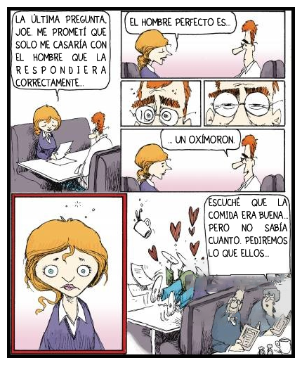 Anáfora marcha al comedor, marcha cansada de las mismas excusas. Sigue vocando, Vocativo, ajeno al enfado de su amada. Anáfora corta cebolla, corta con mala gana una zanahoria, y corta, con ímpetu cortador, muchas más hortalizas. Corta, corta sin parar...
