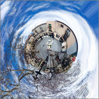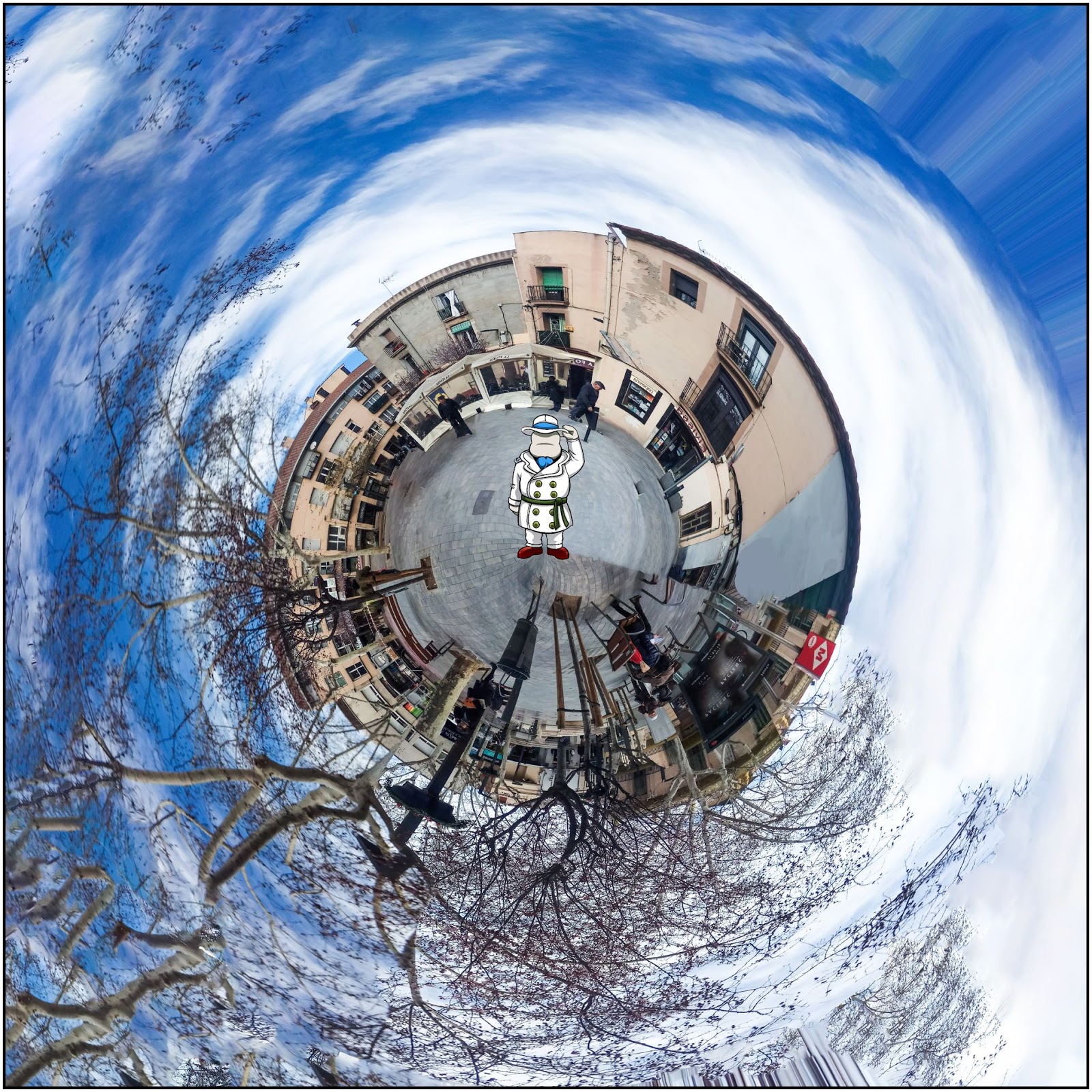(sic) «La contorsiono...». Quiero decir que arrastro la imagen de Plaza Ibiza hasta el Photoshop; allí, después de aplicar giros y efectos, consigo crear el efecto Tiny Planet Effect.