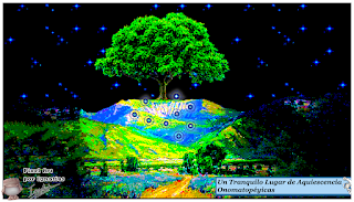 «El crash, cuando se rompe un jarrón, el piiii, para el sonido de un auto o tren, el paafff, cuando un objeto cae al suelo, el famoso Booom cuando explota la bomba, jajaja para la risa...Onomatopeyas, e incluso algunas interjecciones, que son sonidos intransmutables en palabras que cada lengua inventa a su antojo.Se nombran en literatura, en cómics, incluso en algunas series y películas.Lo que pocos saben es que, como todo ser, abstracto o no, también poseen existencia y personalidad propia»Aquiescencias Tomo IComo cada 32 de diciembre, el cónclave de onomatopeyas se reunía en torno al anfiteatro natural de madre roca para deliberar acerca de todos los asuntos del año. Madre roca, un enorme saliente de la montaña con forma de herradura, acogía cada año la colorida reunión, pues de todos es sabido que las distintas vibraciones, en el espectro de onda, poseen tonalidades diferentes según su oscilación. Así, un sonido grave presentará un color más oscuro, mientras que uno más agudo presentará más luminosidad. La singular forma del lugar, en herradura, le confería a este un encanto sonoro, pues proporcionaba una acústica especial a estos seres, por norma guturales y faltos de buen eco, para que pudieran expresar por mediación de sus ideas colorísticas los asuntos en el orden del día.