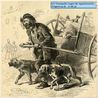 Trapero es grande, peludo, robusto; tan duro por fuera, que se diría todo de acero, con una armadura en vez de huesos. Tan solo sus cristalinos ojos anticipan un atávico pasado de moradores norteños.Va suelto, camina por la calle mayor y por las calles chicas. Acaricia con sus manos los escombros, apenas los roza, busca en su interior tesoros imaginarios. Lo llamo: «¡Trapero!». Y se gira, con un andar sereno y una risa burlesca, riéndose nadie sabe de qué taimada idea, pero con esa inocencia de los críos de escuela.Agarra para si todo cuanto le doy. Adora el cobre, la grifería, toda de plata; los cuadros no los quiere, ni siquiera los marcos, pero se deleita con algunos libros...Aparta con ternura los objetos, con pueril obsesión; metales a un lado, plástico a otro y no se olvida de los papeles. Paso cerca de su casa los domingos, cuando los hombres de ciudad acuden trajeados a la religiosidad dominical, y se unen en el oficio de rezar. A Trapero, le escuchamos tararear, siempre entona alegre alguna canción. Y comentan.—Tiene acero...Trapero tiene acero, cobre y plata, está última siempre de luna.Cada domingo, a vuelta del oficio, paso a tomar un trago. Llevo una botella oscura de la sangre diluida de cristo. Trapero calla, escucha, es buen tesorero del corazón humano, más que algún psicólogo despistado; muchos -yo incluido- harían bien en aprender de su quedo silencio.Produce un tosido ronco al hablar, es esa clase de ronquera propiciada por una vida pobre en recursos, pero sin remilgos en la expansión de cariño.
