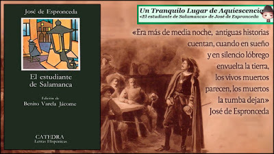 «Era más de media noche, antiguas historias cuentan, cuando en sueño y en silencio lóbrego envuelta la tierra, los vivos muertos parecen, los muertos la tumba dejan»El estudiante de Salamanca (José de Espronceda)Un relato corto de José de Espronceda, escrito allá en 1840, con un personaje atípico para la época, pues Don Félix de Montemar, el protagonista, no nos sale con ser un caballero surgido tal novela de caballerías; no, es un canalla, un crápula, un truhan, un mujeriego…