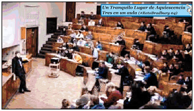 —Los de la última fila bajen el volumen de su parloteo. —De repente, el profesor, que había dejado de escribir en la pizarra, les señaló con la tiza—. Les invito a abandonar el aula si no quieren prestar atención, si no tienen respeto por la asignatura al menos sí tengan respeto por el resto de compañeros que desean tomar apuntes y aprender.