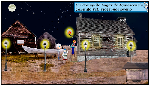 Después de amarrar el bote en el mismo madero de la mañana, se adentraron en la penumbra de las calles. Falkenberg vestía el velo de la semioscuridad nocturna, pues las termolámparas de gas, diseminadas a lo largo de la empedrada calle, apenas alumbraban. No había un alma a esas horas. Se alejaron de la principal vía y se adentraron por callejuelas de tierra alisada en un barrio de casas pobres construidas con madera. Era el barrio de los pescadores, se podía intuir por los remos, las cañas de pesca y las redes que colgaban en paredes o tiradas en el suelo. En el exterior de bastantes casas colgaban candiles en los porches que, con débiles llamas, facilitaban la orientación en el intrincado laberinto de oscuridad. «Dormirás en casa de una amiga». Repitió el muchacho y ella encogió los hombros, le daba igual donde dormir, tenía mucho sueño, había sido un día largo y fatigoso. Se acercaron a una edificación, un poco más alargada que las demás, situada sobre un promontorio de piedras. Nils picó en la puerta tres veces y, para su sorpresa, al abrirse la puerta reconoció en su futura, e inminente anfitriona, a la chica del sombrero de paja blanco, la chica de la taberna que no hizo más que observarles.