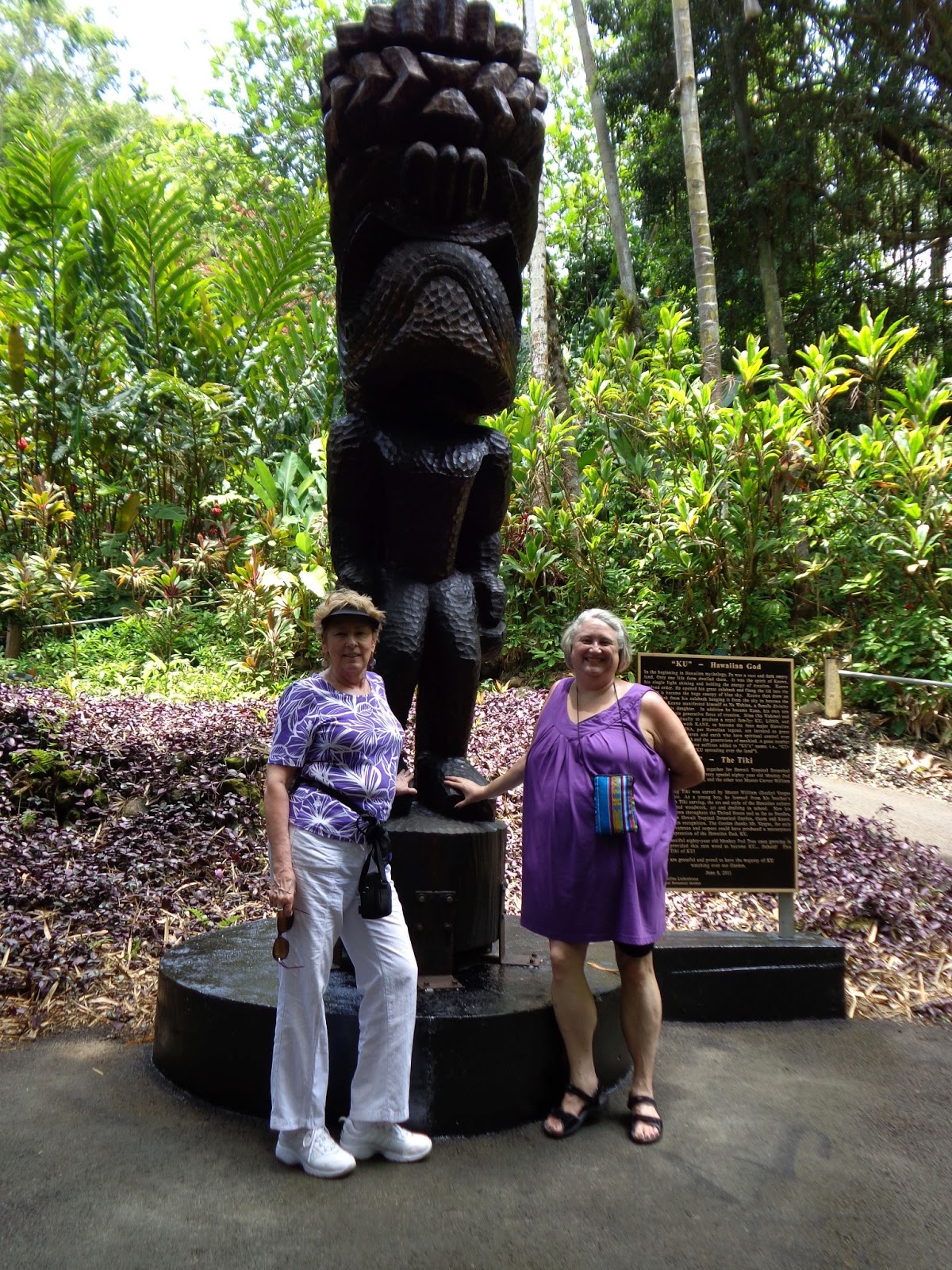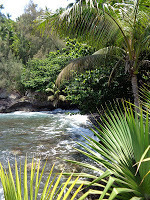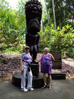 Pam, Delle, and the God KuOn Thursday, we took a long trip all the way around the island. And looking over my photos, I realize I have well over a hundred of them, so I'm dividing the trip into two parts: The Hawai'i Tropical Botanical Garden and The Volcano-Kilauea. I hope I can get some pics from Pam on the Kilauea crater, then find my older ones from 1991 and 2009, to show you how much it's changed. But today I'll take you into the Garden.