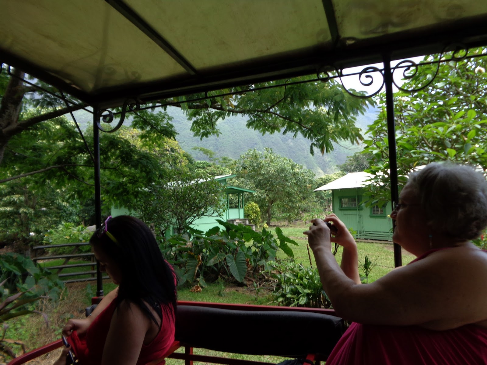 BananaThe path into the valley is steep and I'm no longer good at walking uphill so I made arrangements to be hauled back out in the golf cart for that purpose. I noticed a lot of people made that choice. So I didn't feel so bad. There's a planked path into the valley, an improvement because it's hard to keep one's footing in wet gravel, and this is a very rainy part of the world.