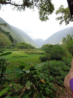 My intrepid traveling companions Betty, Kelsy and PamAll of us ended up wearing the water yesterday, one way or another.But more on that later. We went to the Waipi'o Valley, no mean feat, I tell you. It's a good thing, too. It's an extraordinary, remote place on the north side of the Big Island, and to get there, you drive on the main highway to a small town called Honopaa.
