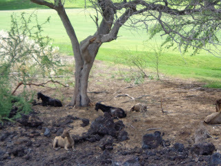 It's been a bit cloudy and we haven't been into the mountains or down to the beach yet. And there's an infinity saltwater pool I'm dying to try. But in the meantime, here's our condo. The goats in the last one are our backyard neighbors.