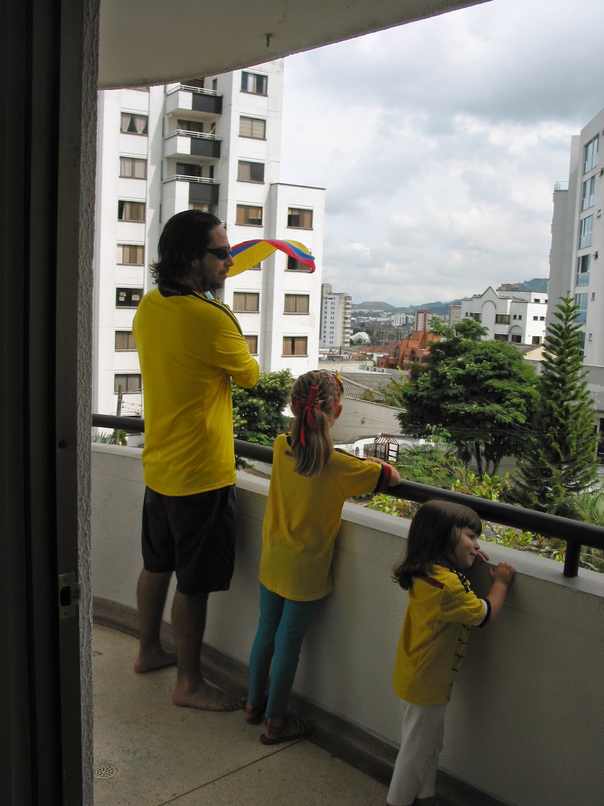 In fact, June 15th are presidential elections and pretty much everybody says that voter turnout and how Colombians vote will depend on the results of the Colombia/Greece game on the 14th. (A little twisted, but it's the reality). There's a story that during a national crises (I don't remember which one) in the 1990s, some TV channels put on an old game between Colombia and Argentina, one in which Colombia won six to zero, to pacify the country. There's a great film called Golpe de Estado based on this game and a guerilla/military group in the mountains that make peace to watch the game together. An absurd reality.