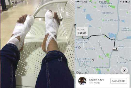 After my surgery in Bangalore Baptist Hospital, I booked an Uber. It gave me an estimated arrival of 8 mins. It also told me , the driver is completing a trip nearby.