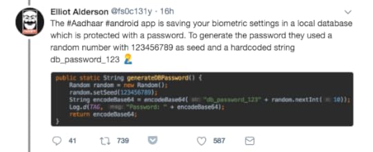 It’s like the Indian government giving its citizens a lock and key to secure their houses. The problem is every citizen has the same exact lock. Anyone can open anyone else’s house with their own key.